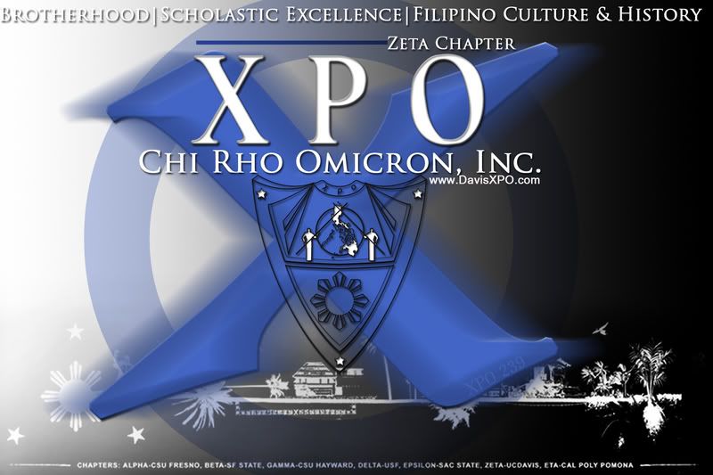 The purpose of Chi Rho Omicron shall be to promote the understanding, enrichment and appreciation of the Pilipino culture, history and heritage through a brotherhood/family environment; to instill the desire for self-improvement, scholastic excellence and the cultivation for civic responsibility.